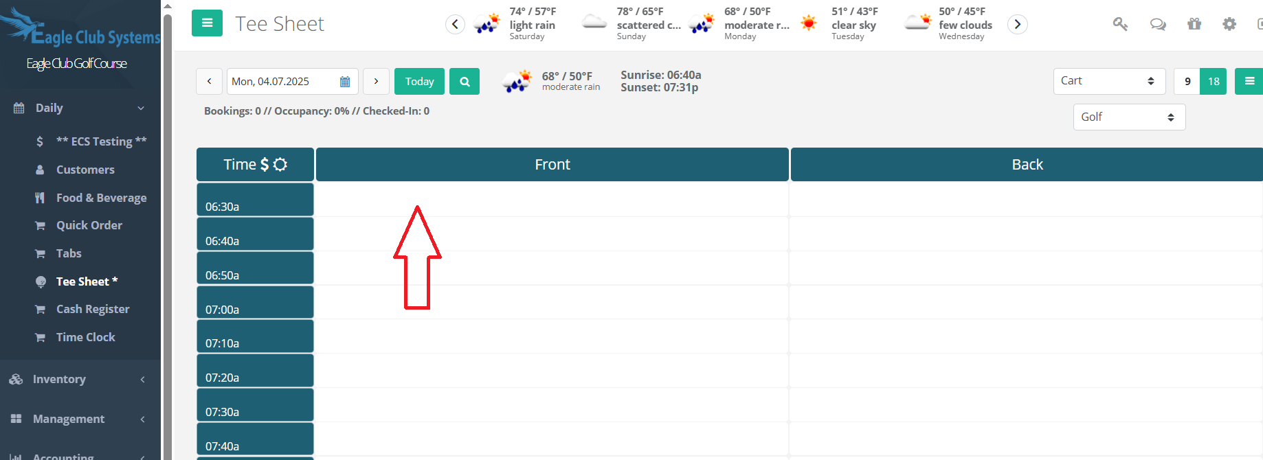Step 1: To book a tee time, simply click/press on any block corresponding to the tee time you wish to book.