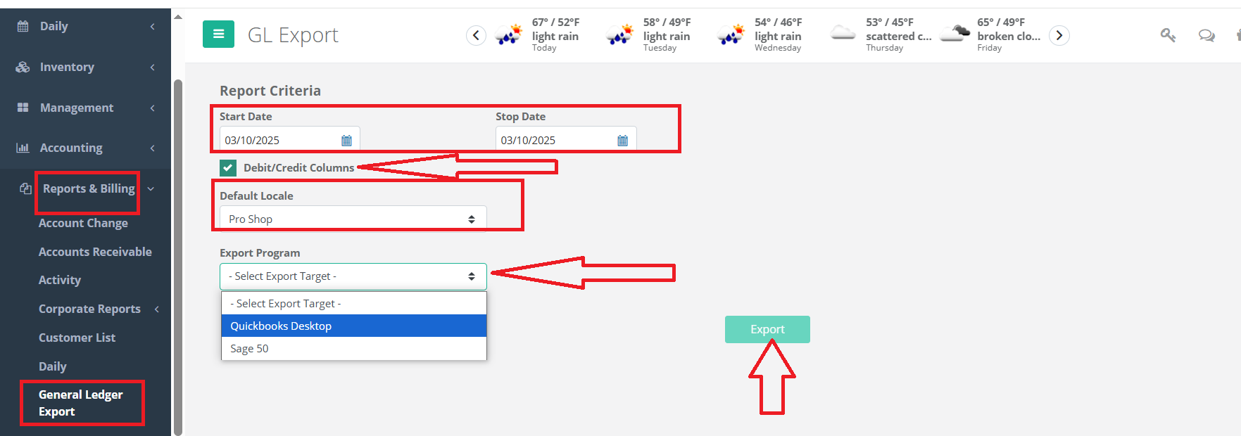 Choose the export program as Quickbooks or Sage 50